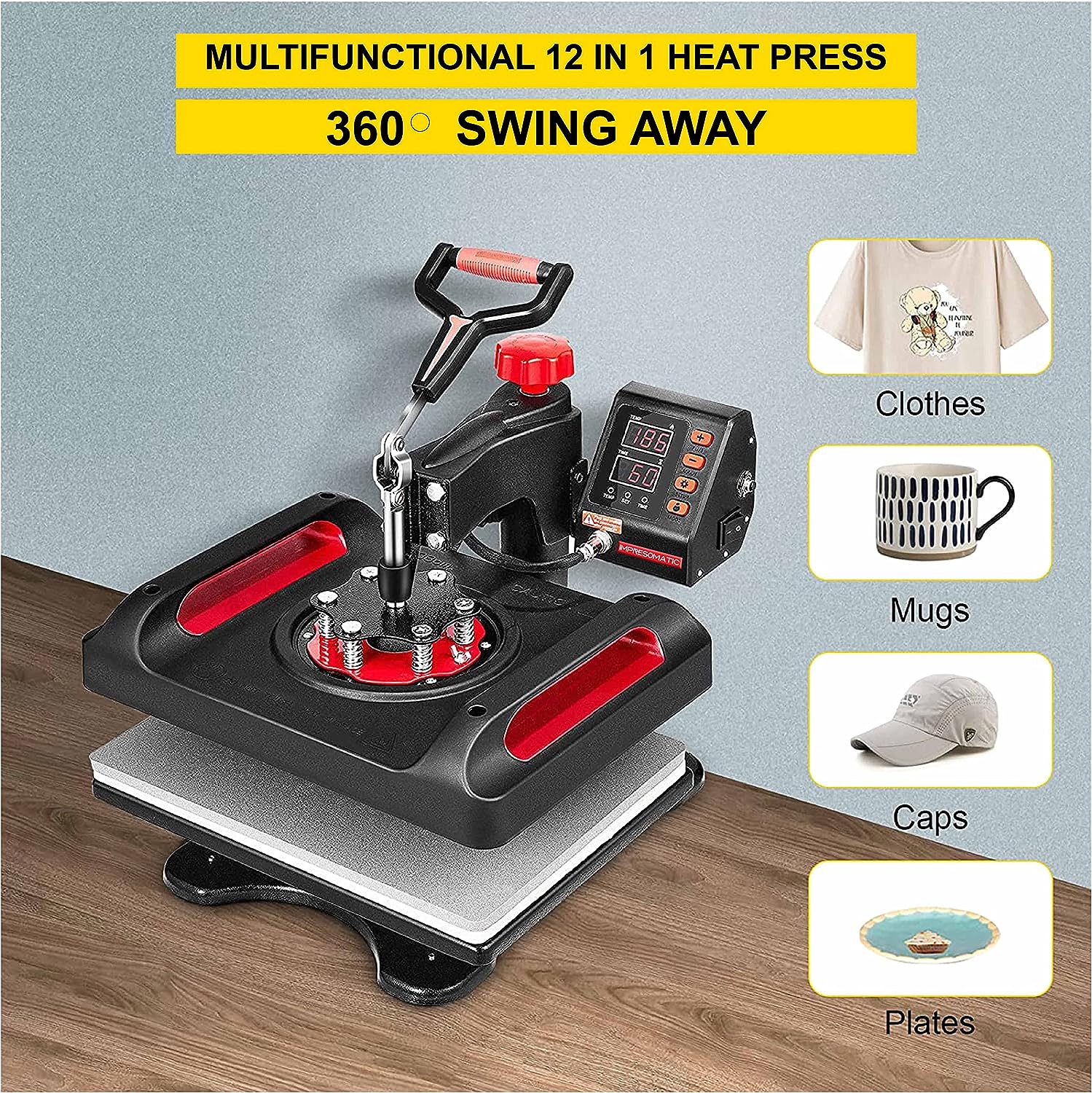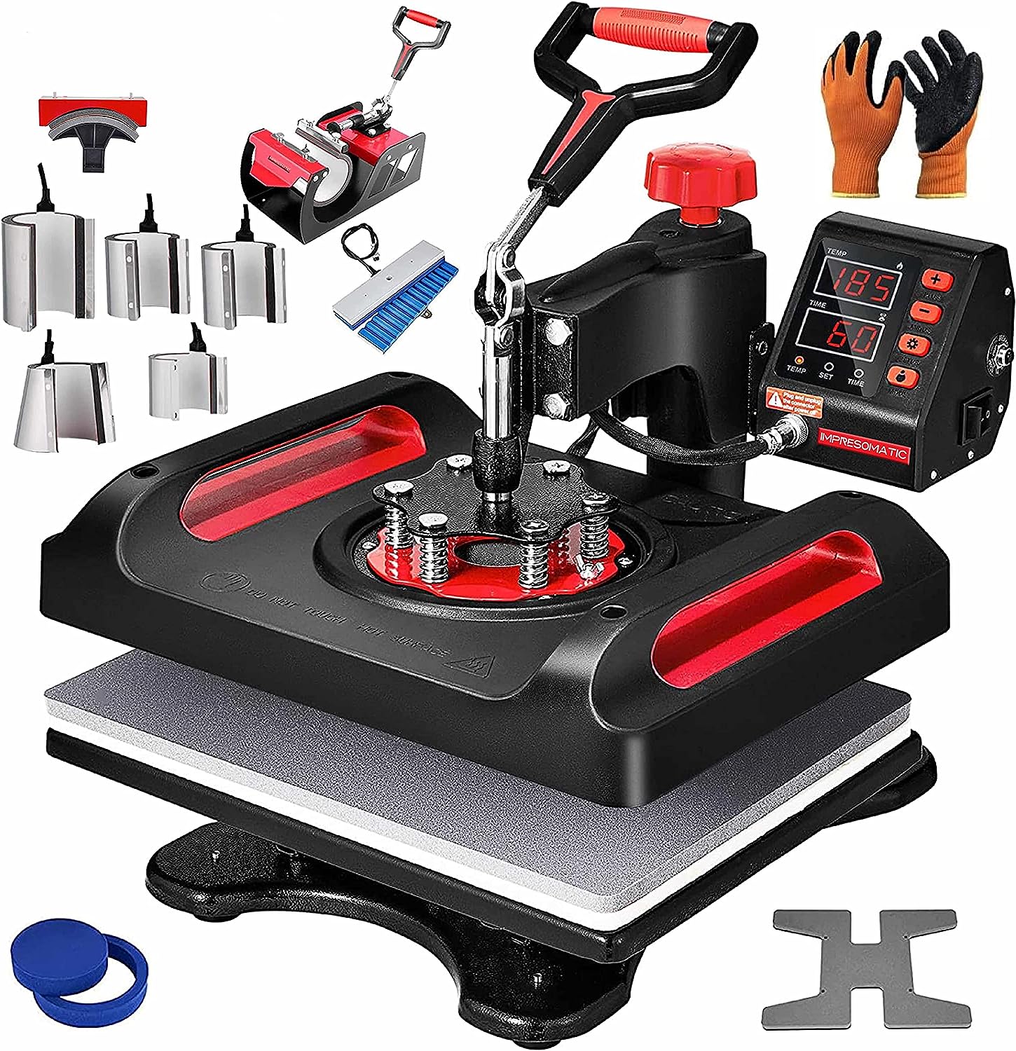 Impresomatic 12 in 1 Heat Press Machine Digital Transfer Sublimation Heat Press Machine 360° Rotation Swing Away Heat Press Machine for Shirts|Bag|Canvas Bag Pillow |Mouse Pad|+ (Free Gloves)