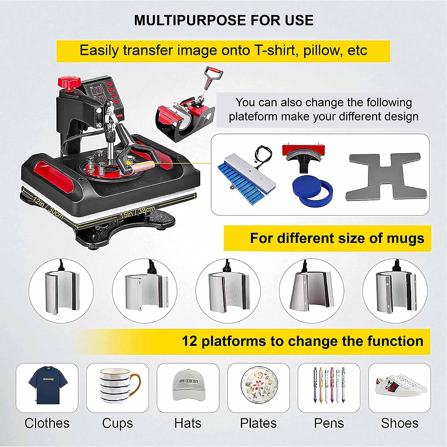 - 12 IN 1 SUBLIMATION MACHINE SAFETY: Made For UAE | Middleeast USE - SAFETY 3 Pin plug - dont use wrong plug it may lead to malfunction.